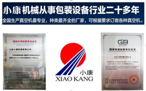 公司通過ISO9001:2000國際質(zhì)量管理體系認(rèn)證和CE認(rèn)證;是中國真空包裝機(jī)行業(yè)中獲取歐盟市場準(zhǔn)入證的企業(yè)。我們受國家質(zhì)檢總局等部委辦的委托,起草編寫了《真空、真空充氣包裝機(jī)通用技術(shù)條件》、《全自動連續(xù)拉伸真空包裝機(jī)》、《油炸機(jī)》等多項(xiàng)國家標(biāo)準(zhǔn),還獲得了國家科學(xué)技術(shù)進(jìn)步三等獎。小康牌真空包裝機(jī),榮獲了中國馳名品牌、中國肉類工業(yè)影響力很強(qiáng)的品牌、中國肉類機(jī)械十佳品牌、中國肉類食品行業(yè)強(qiáng)勢企業(yè)、中國馳名商標(biāo)、山東省“著名商標(biāo)” 、山東省文明誠信百佳臺資企業(yè)、多項(xiàng)國家專利。小康公司是中國食品包裝機(jī)械工業(yè)協(xié)會付會長單位;中國肉類協(xié)會常務(wù)理事單位;省、市消費(fèi)者滿意單位;其產(chǎn)品在國家技術(shù)質(zhì)量抽檢中排位非常不錯。公司總經(jīng)理孫學(xué)軍榮獲全國“五一”勞動獎?wù)?、山東省勞動模范,并當(dāng)選為諸城市十佳政協(xié)委員、中國肉類加工機(jī)械專業(yè)委員會副會長單位、中國肉類協(xié)會常務(wù)理事。